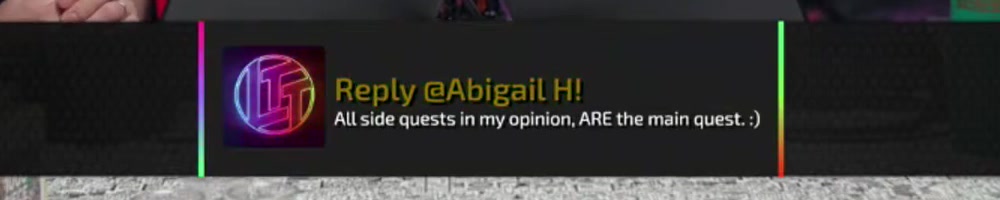 All side quests in my opinion, ARE the main quest. :) | Timestamp |  |