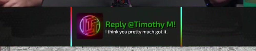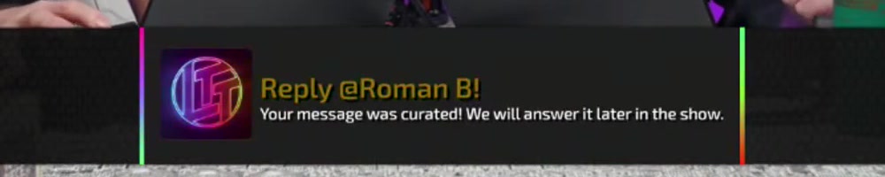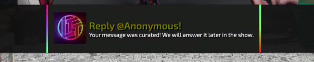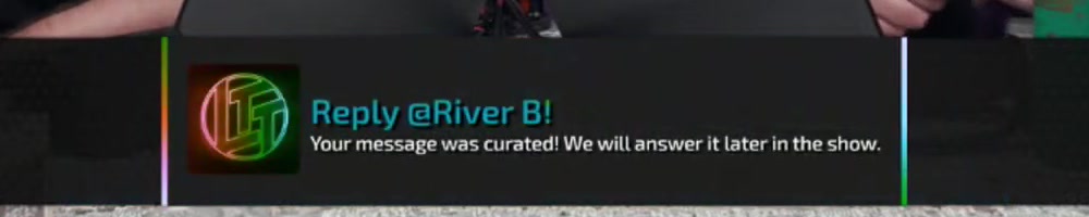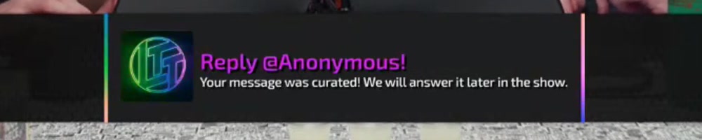 Your message was curated! We will answer it later in the show. | Timestamp |  |
