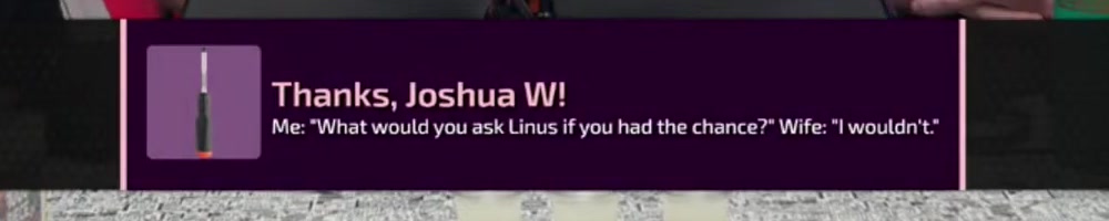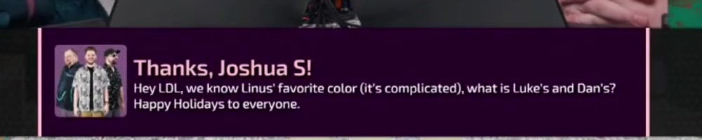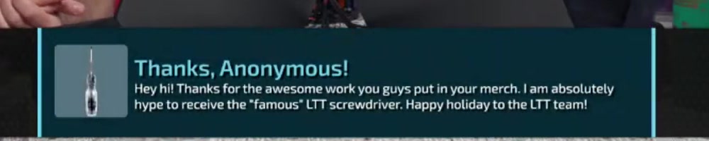 hype to receive the "famous" LTT screwdriver. Happy holiday to the LTT team! | Timestamp |  |