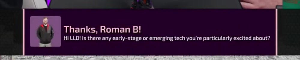 Hi LLD! Is there any early-stage or emerging tech you're particularly excited about? | Timestamp |  |