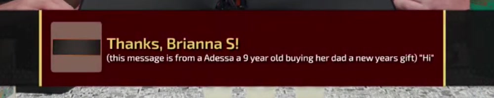 (this message is from a Adessa a 9 year old buying her dad a new years gift) "Hi" | Timestamp |  |