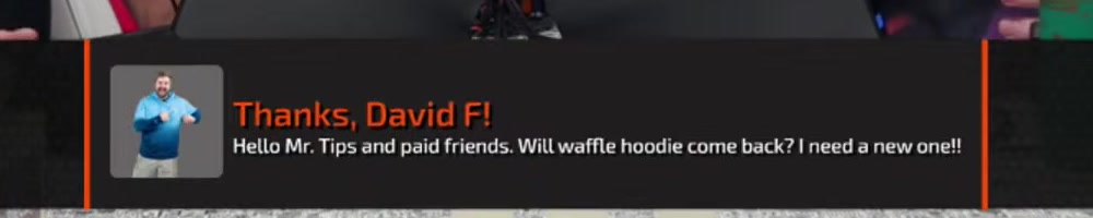 Hello Mr. Tips and paid friends. Will waffle hoodie come back? I need a new one!! | Timestamp |  |