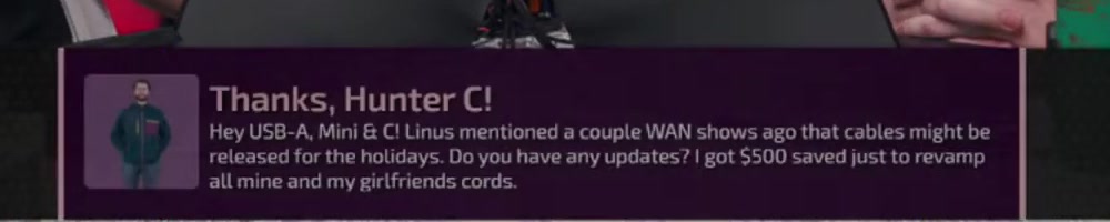 Hey USB-A, Mini & C! Linus mentioned a couple WAN shows ago that cables might be