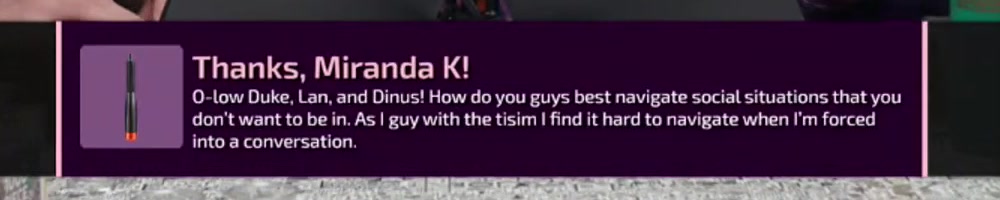 O-low Duke, Lan, and Dinus! How do you guys best navigate social situations that you