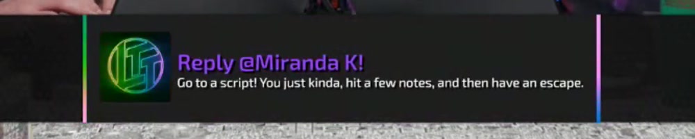Go to a script! You just kinda, hit a few notes, and then have an escape. | Timestamp |  |