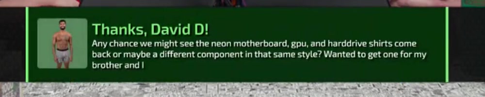 Any chance we might see the neon motherboard, gpu, and harddrive shirts come