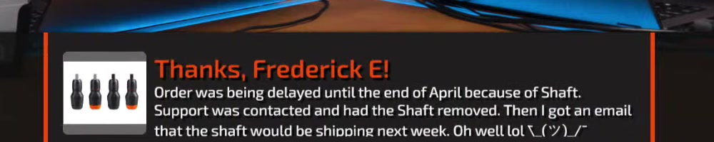 from Black Friday. I'm assuming it'll arrive whenever. | Timestamp |  |