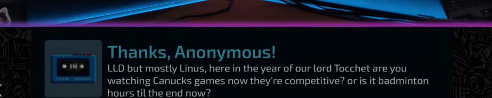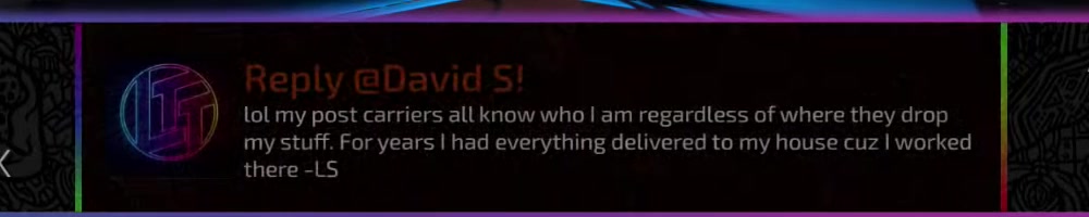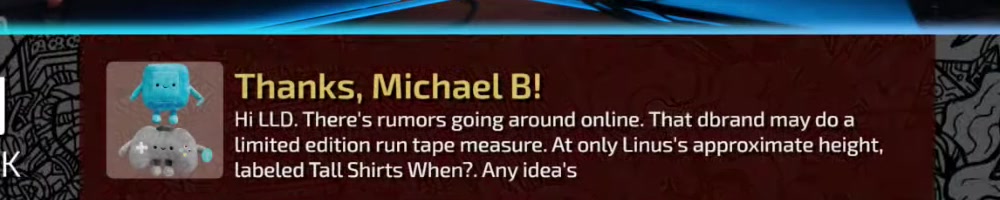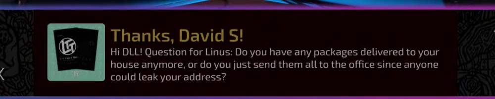 Hi DLL! Question for Linus: Do you have any packages delivered to your