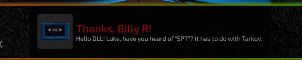 Hello DLL! Luke, have you heard of "SPT"? It has to do with Tarkov. | Timestamp |  |