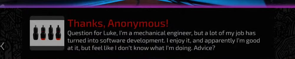 Question for Luke, I'm a mechanical engineer, but a lot of my job has