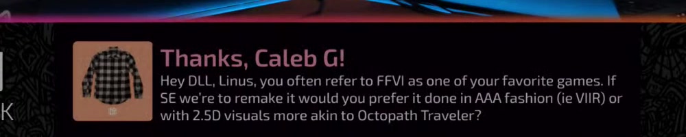 Hey DLL, Linus, you often refer to FFVI as one of your favorite games. If