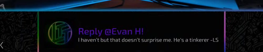 I haven't but that doesn't surprise me. He's a tinkerer -LS | Timestamp |  |