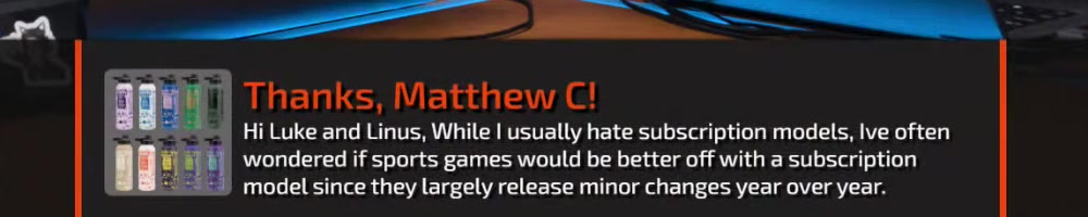 Hi Luke and Linus, While I usually hate subscription models, Ive often