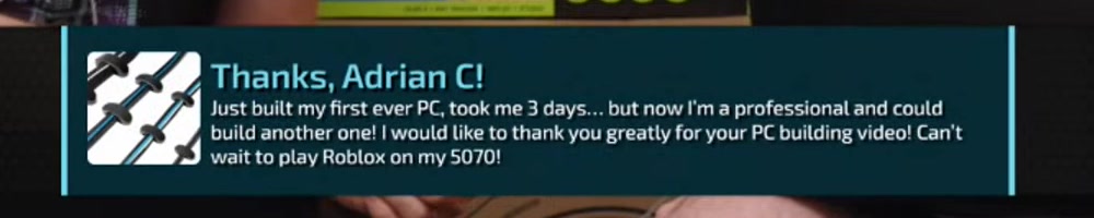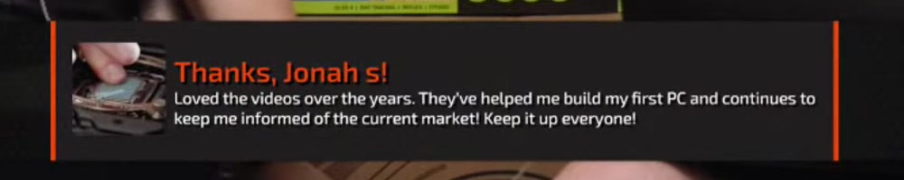 Loved the videos over the years. They've helped me build my first PC and continues to