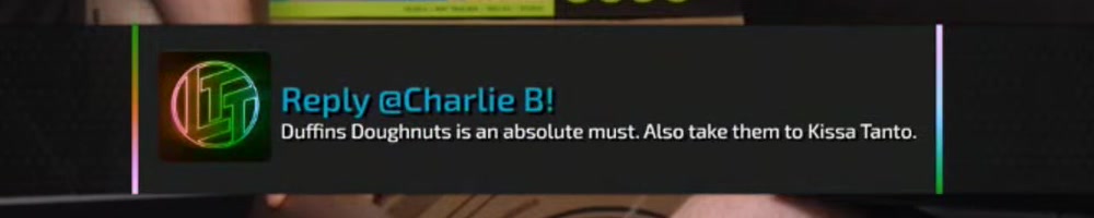 Duffins Doughnuts is an absolute must. Also take them to Kissa Tanto. | Timestamp |  |