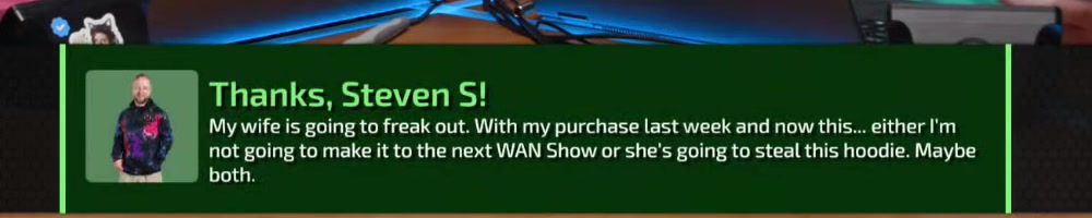 Lets gooooo! Wan show hoodie. Hi Mom. | Timestamp |  |