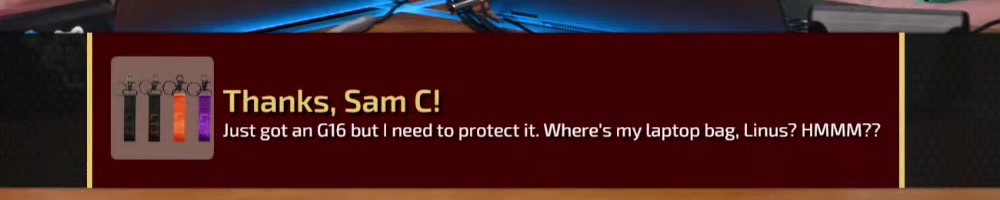 Just got an G16 but I need to protect it. Where's my laptop bag, Linus? HMMM?? | Timestamp |  |