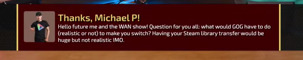 Hi dll, finally managed to catch up to wanshow live, was looking forward to the