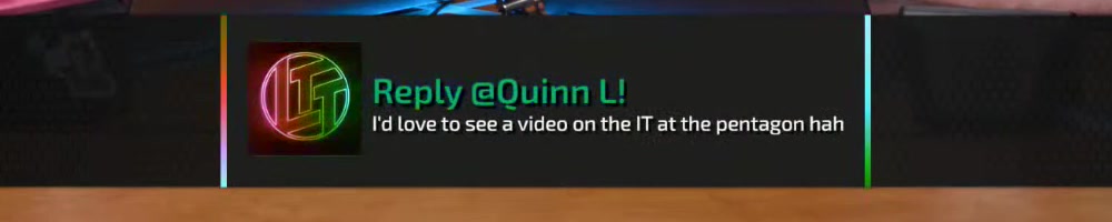 I'd love to see a video on the IT at the pentagon hah | Timestamp |  |