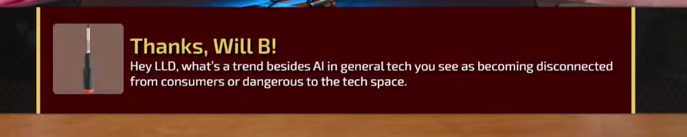 Hey LLD, what's a trend besides Al in general tech you see as becoming disconnected