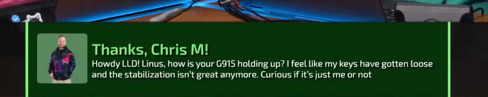 Howdy LLD! Linus, how is your G915 holding up? I feel like my keys have gotten loose