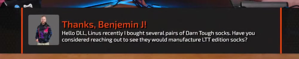 considered reaching out to see they would manufacture LTT edition socks? | Timestamp |  |