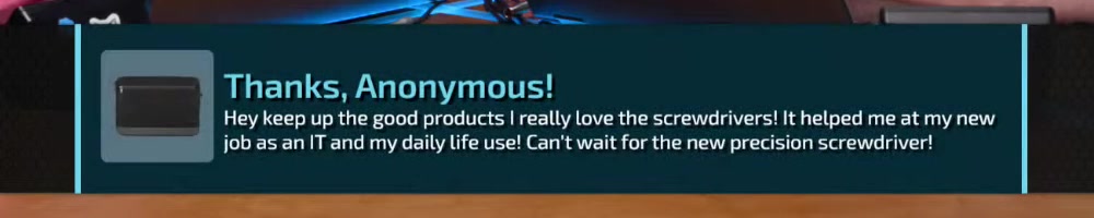 Hey keep up the good products I really love the screwdrivers! It helped me at my new