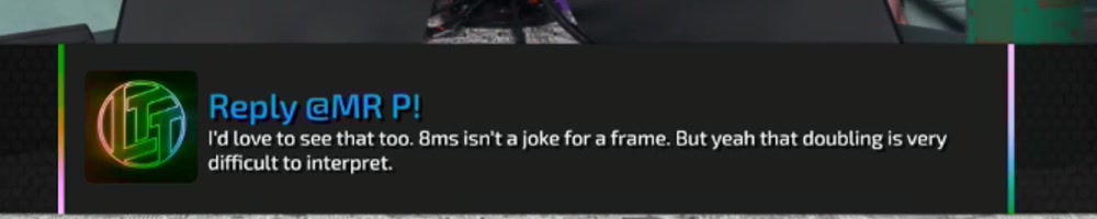 I'd love to see that too. 8ms isn't a joke for a frame. But yeah that doubling is very