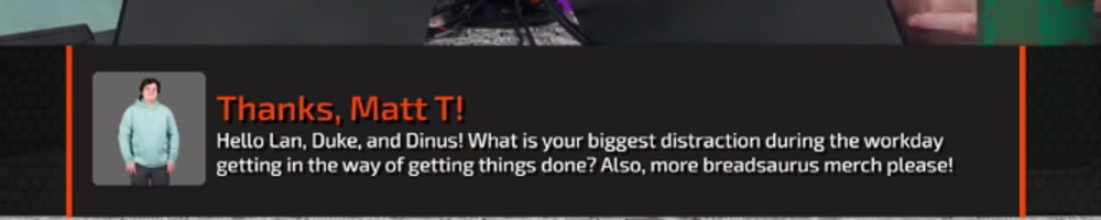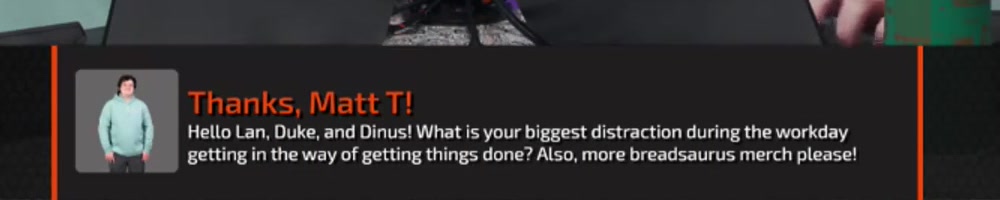 Hello Lan, Duke, and Dinus! What is your biggest distraction during the workday