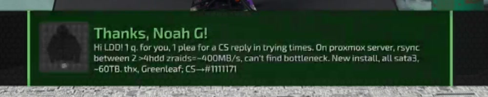 Hi LDD! 1 q. for you, 1 plea for a CS reply in trying times. On proxmox server, rsync