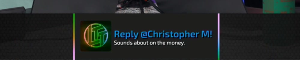 My wife is gonna love this at least as much as my RGB hoodie she stole. Cheers! | Timestamp |  |
