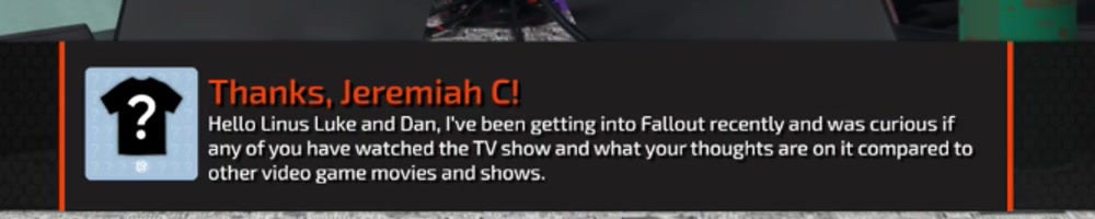 Hello Linus Luke and Dan, I've been getting into Fallout recently and was curious if