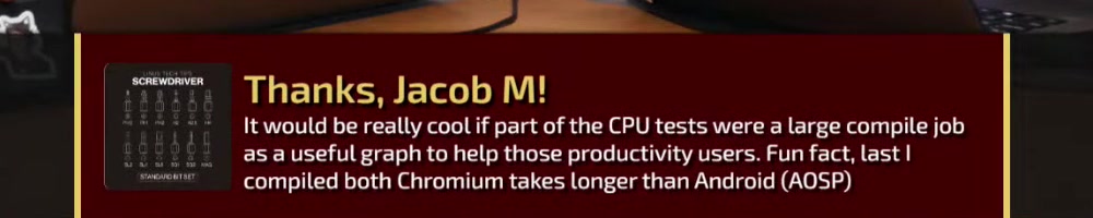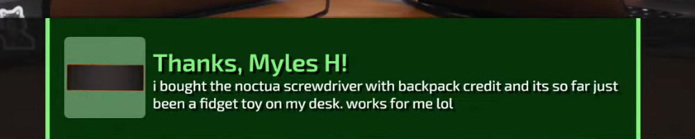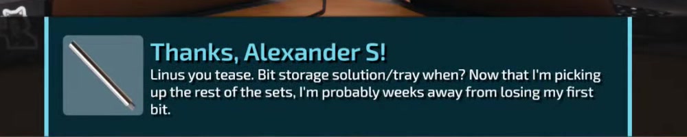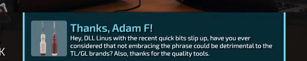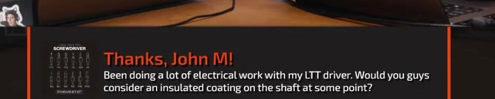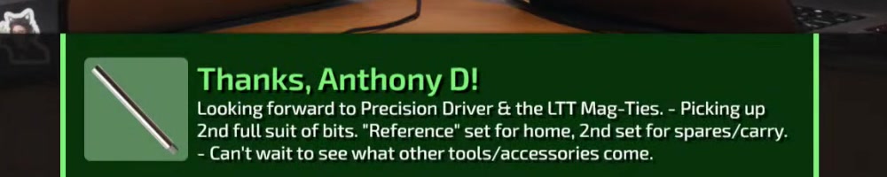 Happy that I can finally buy a LTT Screwdriver, you guys rock. | Timestamp |  |