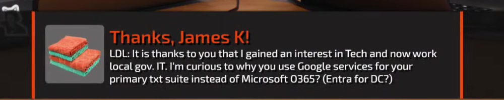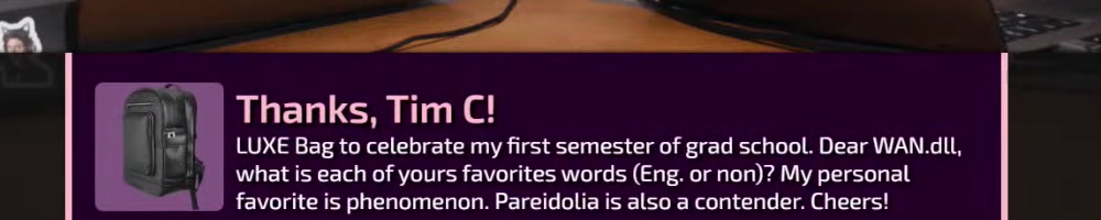 lots of stuff. Thanks again for being awesome. | Timestamp |  |
