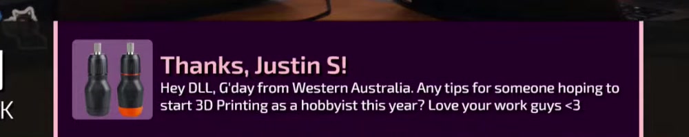 start 3D Printing as a hobbyist this year? Love your work guys <3 | Timestamp |  |