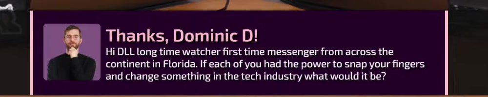 Hi .DLL, love all the content you guys put out, keep it up. 2 questions for