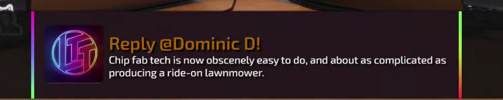 Chip fab tech is now obscenely easy to do, and about as complicated as