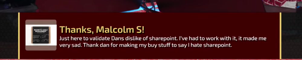 very sad. Thank dan for making my buy stuff to say I hate sharepoint. | Timestamp |  |