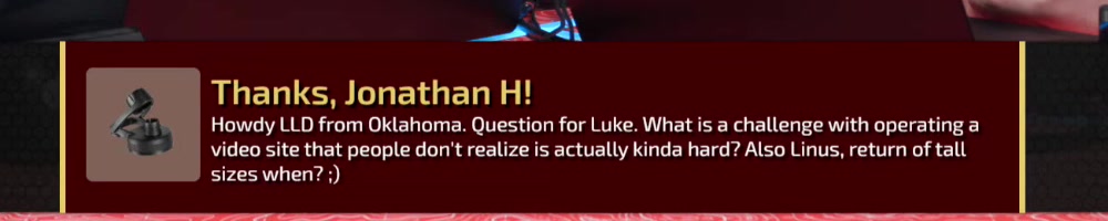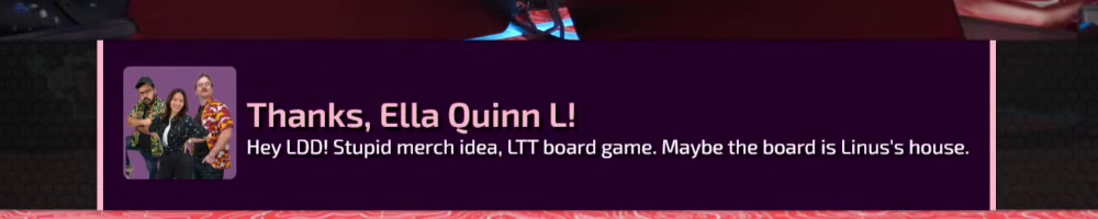 Hey LDD! Stupid merch idea, LTT board game. Maybe the board is Linus's house. | Timestamp |  |