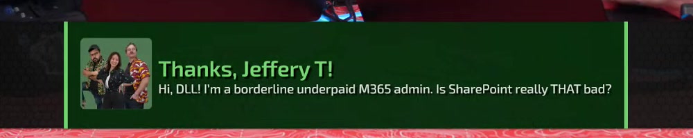 Hi, DLL! I'm a borderline underpaid M365 admin. Is SharePoint really THAT bad? | Timestamp |  |