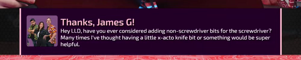 Hey LLD, have you ever considered adding non-screwdriver bits for the screwdriver?