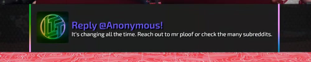 It's changing all the time. Reach out to mr ploof or check the many subreddits. | Timestamp |  |