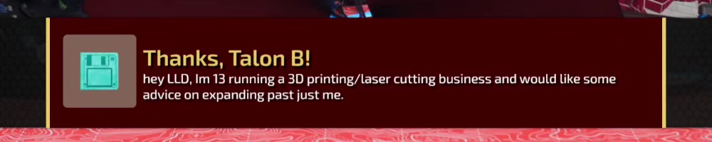 hey LLD, Im 13 running a 3D printing/laser cutting business and would like some