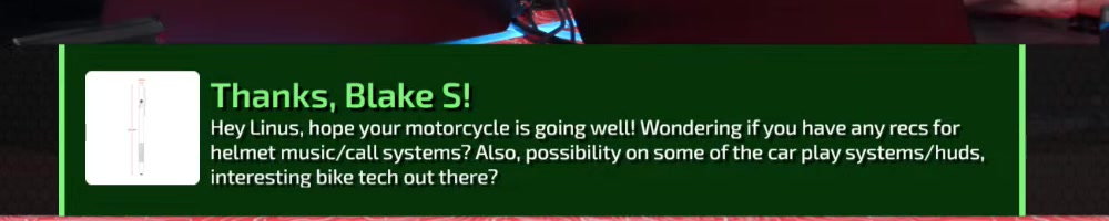 Hey Linus, hope your motorcycle is going well! Wondering if you have any recs for