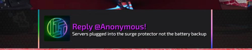 Servers plugged into the surge protector not the battery backup | Timestamp |  |