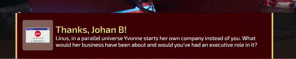 Linus, in a parallel universe Yvonne starts her own company instead of you. What