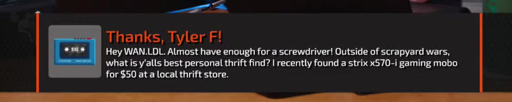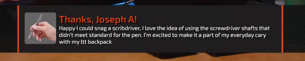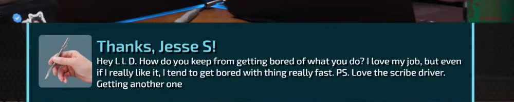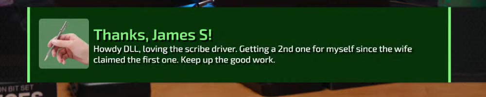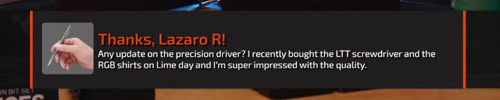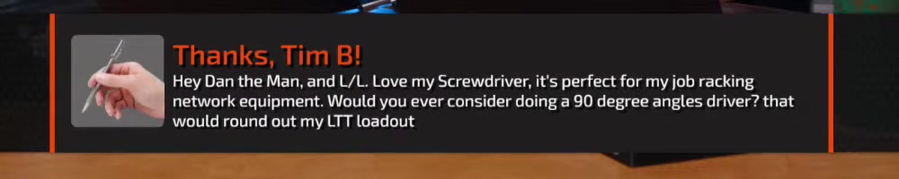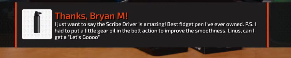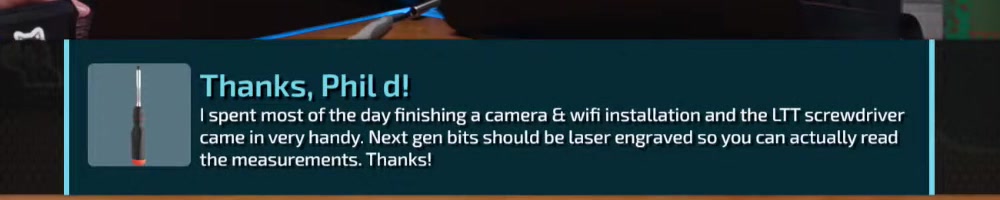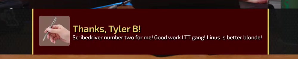 Scribedriver number two for me! Good work LTT gang! Linus is better blonde! | Timestamp |  |