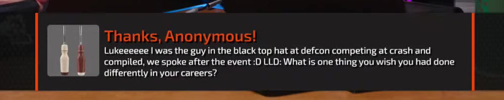 Lukeeeeee I was the guy in the black top hat at defcon competing at crash and