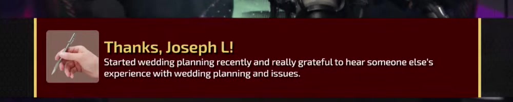 experience with wedding planning and issues. | Timestamp |  |