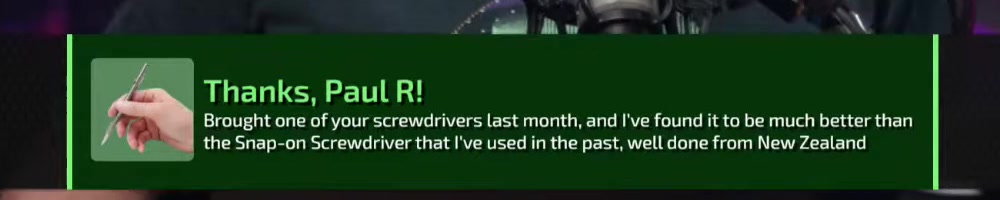 the Snap-on Screwdriver that I've used in the past, well done from New Zealand | Timestamp |  |
